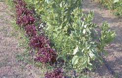La otra hortaliza recolectada durante todo el mes han sido las lechugas de cortar (hoja de roble). No sabemos cuánto tiempo se prolongará la cosecha ya que es el primer año que se intenta su cultivo. La única fila (en la foto a la izquierda de las matas de habas) proporciona suficientes hojas para el autoabastecimiento.